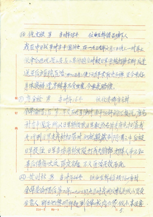 ⑩ 倪文绖 男 当时年35岁 住白龙桥镇吕圹下人
