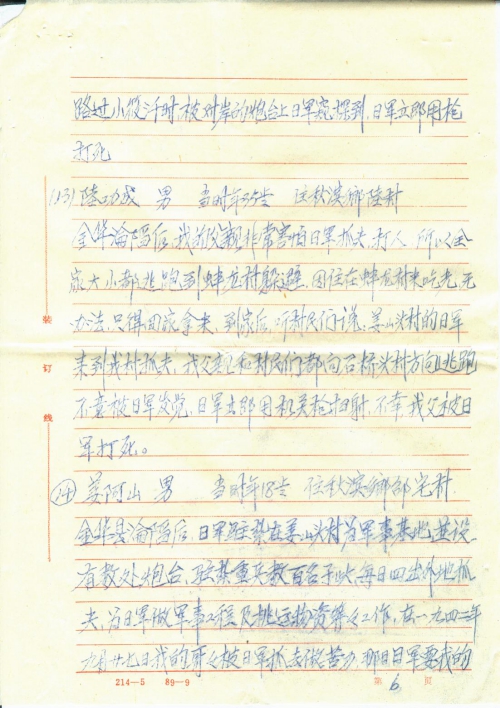 ⑬ 陆功成 男 当时年35岁 住秋滨乡陆村