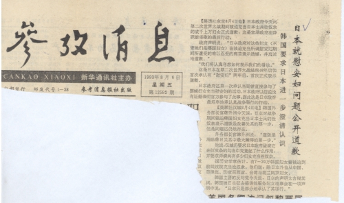 (三)1993年8月6日参政消息登载:日本就慰安妇问题公开道歉,韩国要求日本进一步澄清认识。