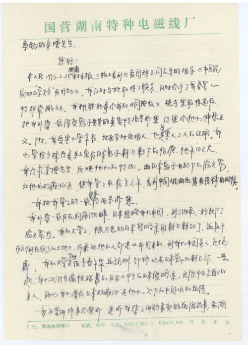 本人在1993.2.25湖南妇女报二版上看到记者周辉玉同志写的报导《中国民间对日“索赔”在行动》,我及时与她取得了联系,及时给予了我答复,心情非常激动。我根据她寄给我们的《同胞信》,想与您取得通信,把我外婆一家深受鬼子其害的真实情况告诉您,请您给他们伸张正义。附:我受害小舅幸存,现有当时证明人,也是受害人三人的证明。我小舅徐冬林活着,手上留有日本鬼子刺刀刺下的伤疤,他年纪已大。我请求童增先生反映他们的情况,日本鬼子犯下的滔天罪,让他们的政府归还。使我舅舅在有生之年,看到中国人民的血债有清算的时候。