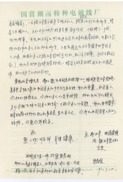 写信日期:1993-07-10