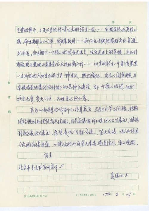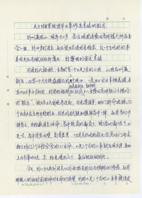 关于我母等被侵华日军惨杀索赔的报告