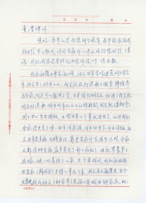 春节已过向您拜个晚年,春节前您给我的回信,早已收到。因我生病所以未及时给您回信,请谅!我把我家受害情况向您诉说一下,请示教。