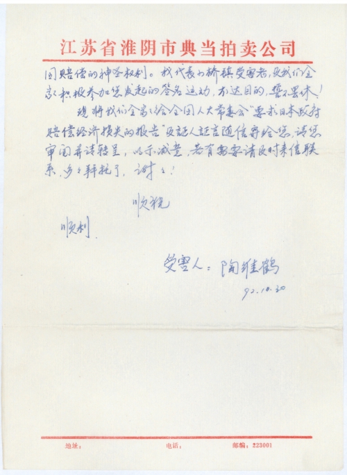 来信请寄:江苏省淮阴典当拍卖公司 陶维鹤 收