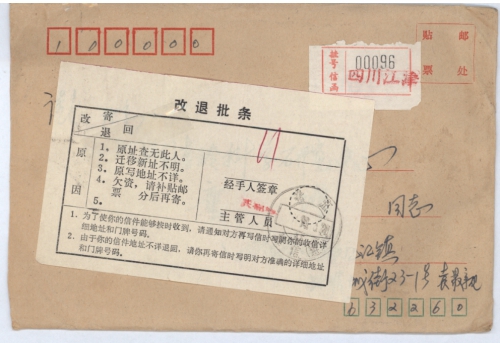 写信地址:四川省江津市