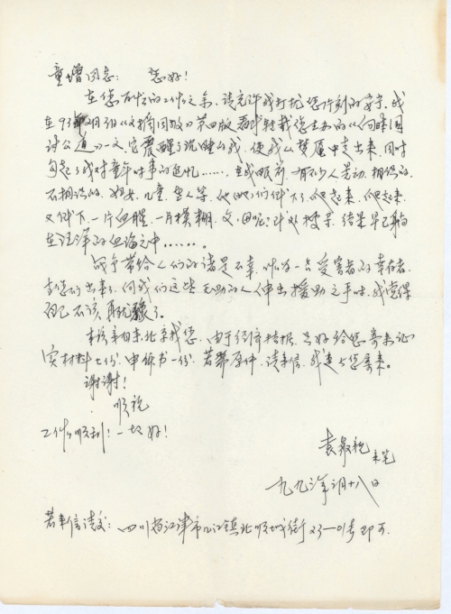 写信人:袁众亲