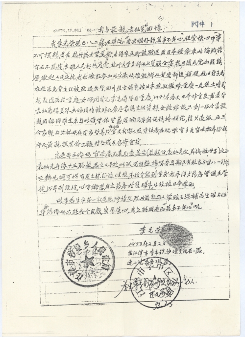 在您百忙的工作之余,请允许我打扰您片刻的安宁。我在93年2月3《文摘周报》第四版看到转载您主办的《向日本国讨公道》一文,它震醒了沉睡的我。使我从梦魇中走出来,同时勾起了我对童年时事的追忆……,在我眼前,有不少人晃动,相识的、不相识的、妇女、儿童、老人等。他(她)们倒下了,爬起来,爬起来,又倒下。一片血腥,一片模糊,父母呢?到处搜寻,结果早已躺在汪洋的血海之中……。