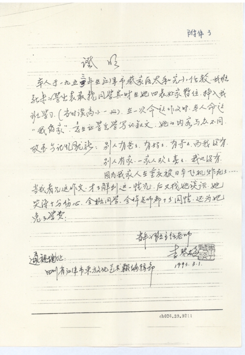 写信日期:1993-03-03