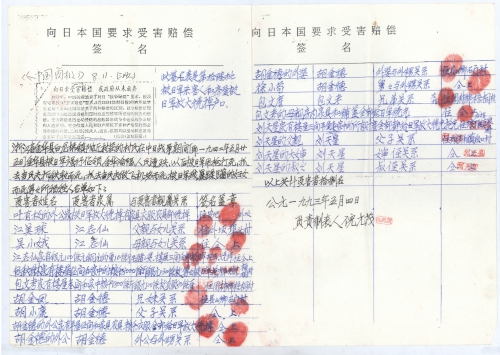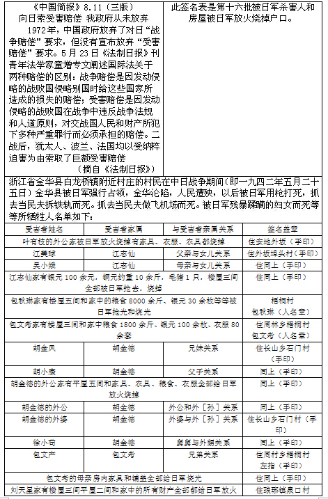 此签名表是第十六批被日军杀害人和房屋被日军放火烧掉户口。