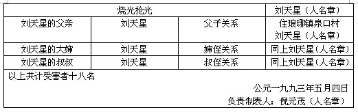 (18)刘天星的叔叔 男 当时年 住兰贝乡石宫村。