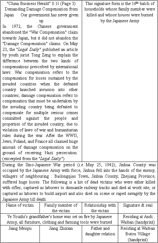 Demanding Damage Compensation from Japan