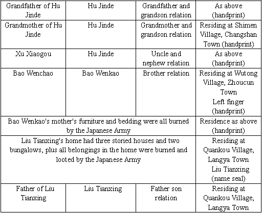 This signature table is the sixteenth batch of households whose family members were killed and whose houses were burned by the Japanese Army.