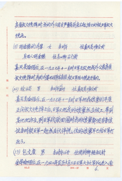 (12) Xu Xiaogou Male back then 23 Residing at Tanghui Village, Jiaxing County