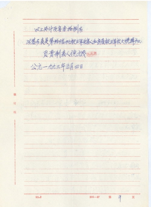 After Jinhua fell into the hands of the enemy, on June 1, 1942 lunar calendar, massive Japanese troops entered South Mountain for a mopping-up operation, they fiercely attacked Chinese Army, and set fire to all houses in our village. My home was a five storied building (namely three rooms and twin structure), three bungalows, two door frames, all furniture, farming tools, clothing, over 8000 catties of grain, about 100 catties of copper, over 130 catties of silver dollars, over 60 catties of pewter, two gold rings weighing 15.6 grams, more than 40 suits of clothing etc were all burned by the Japanese Army.