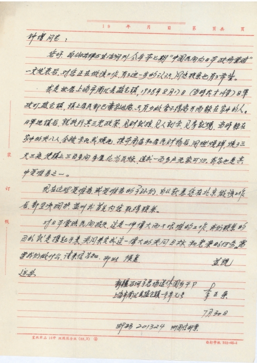 现在这些受难者,或受难者的子孙们,自从获悉您在北京做该工作后,都坚决拥护,并叫我首先向您取得联系。