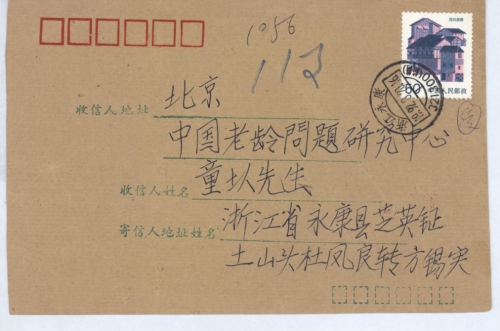 因为我暂住永康县芝英镇土山头杜凤良家里,请回信