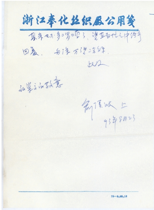 联系地址:中国宁波奉化丝织总厂 俞溪波