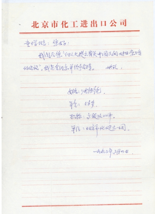 我阅后您“向人大提出有关中国民间对日索赔的建议”。我完全同意并给予支持。
