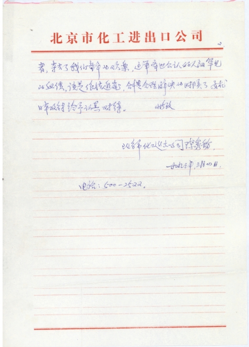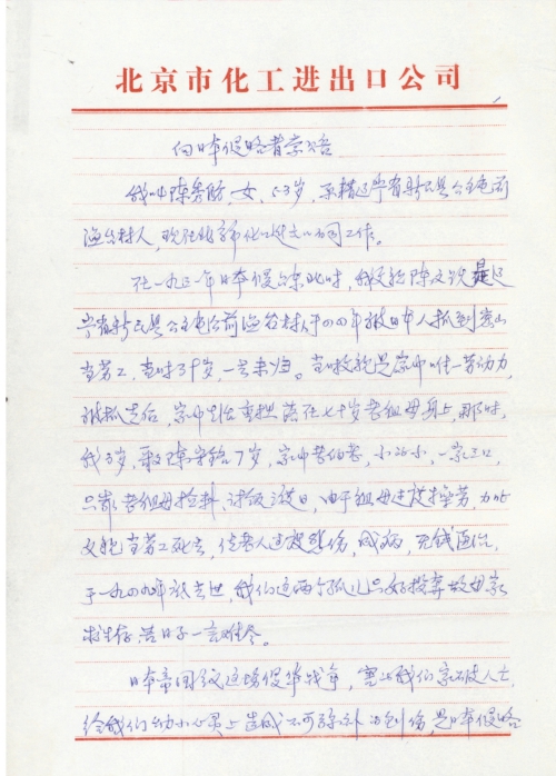 我叫陈秀舫,女,53岁,原籍辽宁省新民县公主屯前渔台村人,现在北京市化工进出口公司工作。