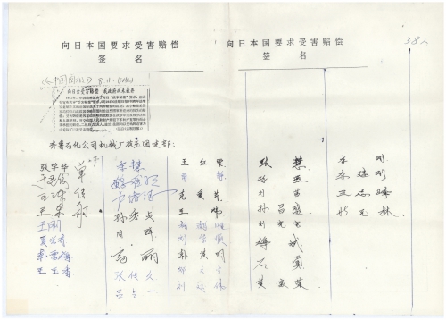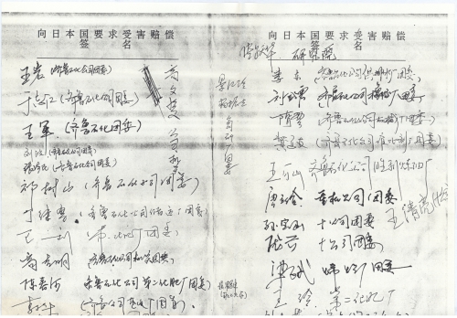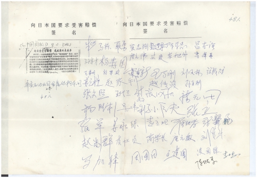 细节:支持索赔,寄来“向日本国要求受害赔偿签名”表。