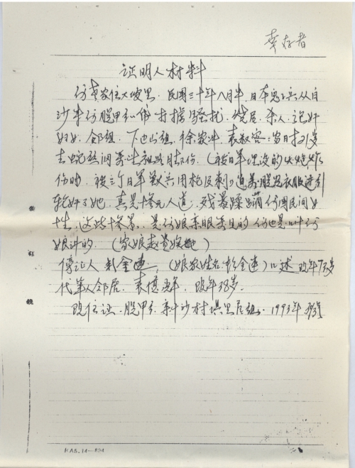 [旁]证人口述材料