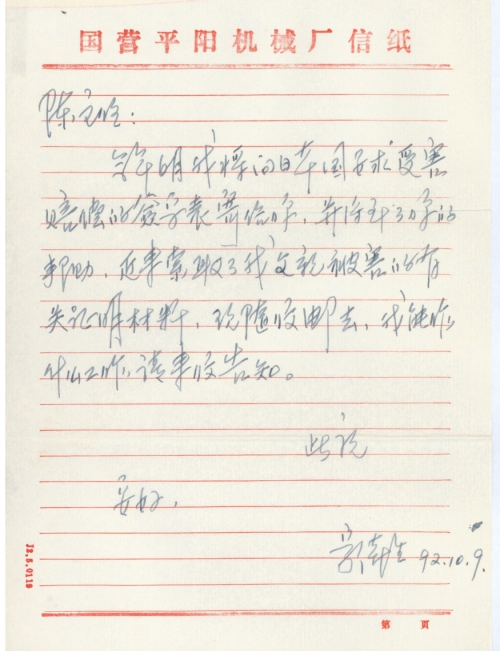 Date of letter:1992-10-09