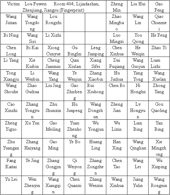 Name(s) of victim(s):Wang Huanzhang, Wang Jifa (Wang Huanzhang’s son), Wang Xianfeng (Wang Huanzhang’s daughter-in-law), Wang Mei (Wang Huan Zhang’s granddaughter) and other people
