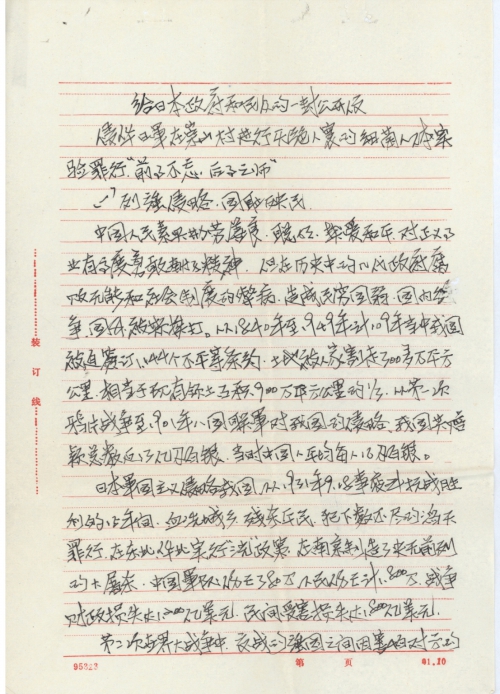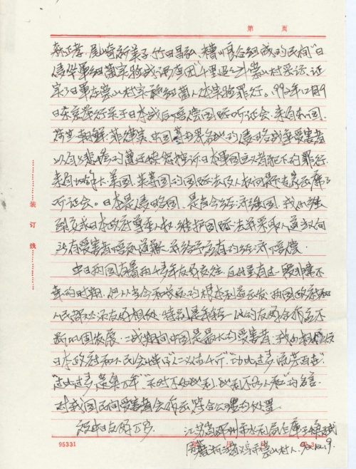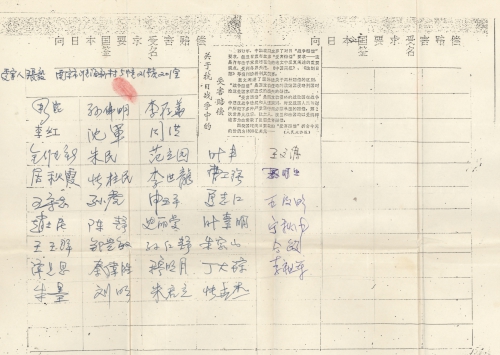 I will return to my hometown again to gather victim materials and launch a signature program before or after the Spring Festival. Please keep close contact with me and send me a signature form. A post-war Chinese compensation hearing meeting was held in Tokyo on December 9. If there is a chance in the future, I am willing to attend the meeting as a victim to charge the invading Japanese army of its crimes.