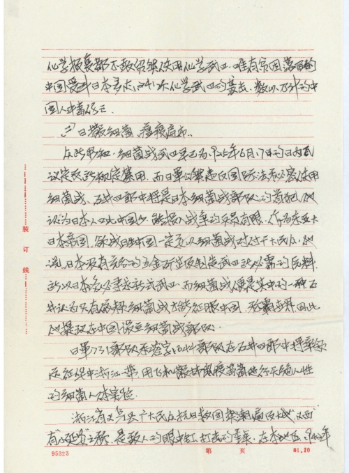 I’ve received your letter. To gather information about human experiments carried out by the invading Japanese army in my hometown Chongshan, Jiangwan, Yiwu, Zhejiang, I returned to my hometown on April 24 to carry out surveys and interviews. The victims wrote a letter to the Japanese government and people. I am now sending the letter to you for you to correct it and send it to Japan.