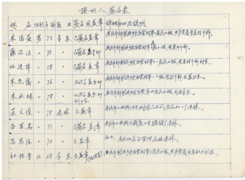 证明人签名表