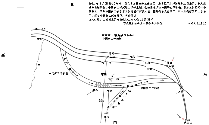 细节:1942年1月份我在我的家乡遇到日军扫荡结果被抓住押送到日本做劳工长达四年,每天挖山洞吃得是猪饲料,冬天也不发棉衣,经常受到毒打我要求日本政府给我赔偿。