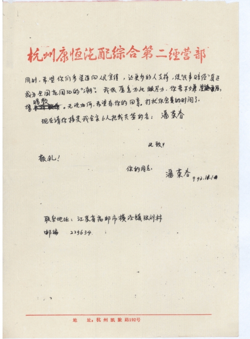 写信人:潘荣春