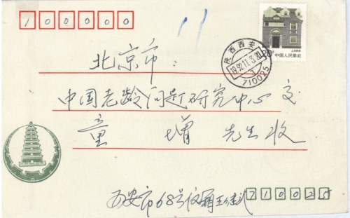 写信地址:陕西省西安市