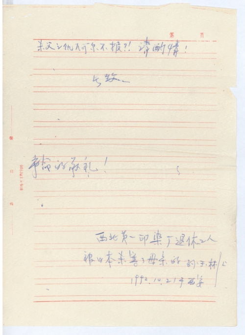 给您去信的目的,一是报名,二是建议,我们必要时成立向日本索赔协会,如认为可行,我可在陕西搞起来,我们的行动纯属民间自发行动,讨还我们的血债。杀父之仇不可不报?!请酌情!