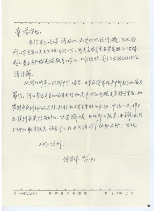 I received and read your letter a while ago; please be rest assured. First, to better explain the case, I would like to clarify my relationship with the victim. I am the second son-in-law of the direct victim An Aijie. My wife Fang Xiumei works in the education industry, so she is too busy to promptly reply to your letter. Sorry for the delay.
