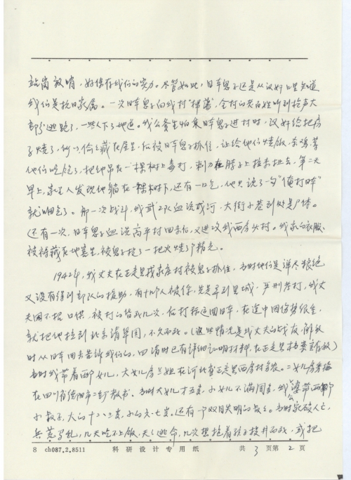 In 1934, as the Japanese army committed rampant crimes including burning, killing, robbing and looting in northeastern China, my husband Fang Chouwen, under the leadership of the upper-level of the Communist Party, set up a Party team in our village, with himself as the head of the team (with the code: model squad). The team was responsible for publicity and mobilizing the people.
