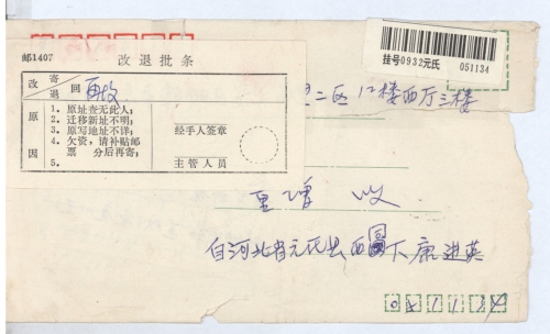 我伯父康振玉,系河北省元氏县北褚乡西同下村人。日军侵华期间,与一九四四年农历9月28日早晨,被元氏县日伪宪兵队无故抓捕,当天我村被抓的还有军良、书秀、玉辰、进校、喜文、和我伯父(振玉)。被抓到元氏县城,经过多次的拷打、审讯,押送到石家庄日伪南兵营,因经不住日伪的残[酷]折磨,而死于南兵营。伯父被抓,祖母被气死,祖父精神失常,造成了家庭的无比困苦。因父亲负担过重,造成身体的伤害,现在[常]年有病,卧床不起,家中生活极度困苦。