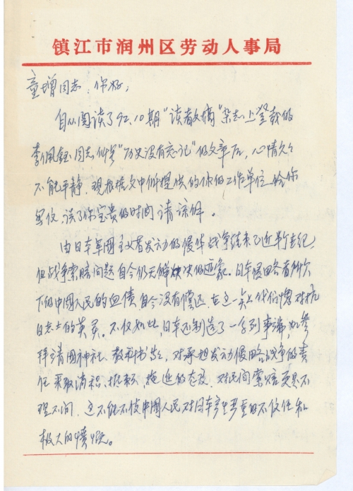 由日本军国主义者发动的侵华战争结束已近半个世纪,但战争索赔问题[至]今仍无解决的迹象。日本侵略者所欠下的中国人民的血债,[至]今没有偿还。在这一点上我们愧对抗日志士的英灵。不仅如此,日本还制造了一系列事端,如参拜靖国神社、教科书等等。对承担发动侵略战争的责任采取消[极]、抵赖、拖延的态度。对民间索赔更是不理不问,这不能不使中国人民对日本产生严重的不信任和极大的愤慨。