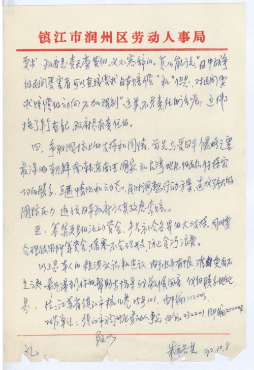 以上是本人的粗浅认识和建议。由于水平有限,难免有不足之处,希望得到你的帮助与指导。我敬候回音。我的联系地址是:住:江苏省镇江市梳儿巷25号101。邮编212003。工作单位:镇江市润州区劳动从事局,电话232201,邮编212004