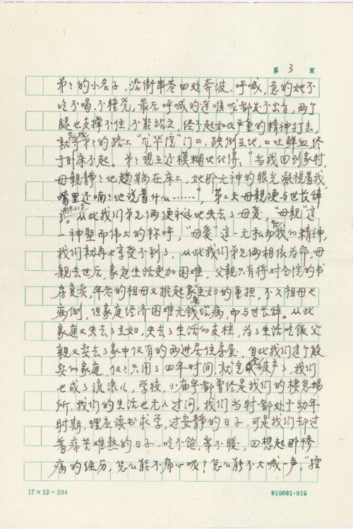 细节:1939年年底,有一天我的弟弟在家门口玩耍时被日寇抢走,母亲因找不到孩子急的口吐鲜血第二天与世长辞了,我和弟弟从此失去了母爱,祖母也病倒去世了家中失去了主妇没几年的时间我家就破产了。我们坚决童先生提出来的“对日索赔”支持大签名活动。