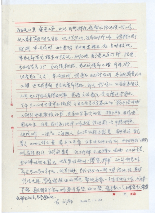 他现在在北京中科网站上班,2000元/月,具体工作地点在大北京,住在前门附近,上班也方便,工作上不管内业外业也能胜任,他也喜欢那些工作,跑外业不怕吃苦,但就是开支不及时,9月份要工资,最近才发下来,还是分两次发,最后,大概只有暑期效益才好,平时则较差,10月份没拿到工资让我汇去2000元,之后,开支等事一直无消息,我为他心焦,寝食不安,所以,我想拜托您帮忙给他换一份工作,他的基本简历附在信后,他大学毕业后,没有及时找工作,主要精力用于考研,第一次考时,由于卷页多,其中两张粘在一起,当时未发现,等其他都签完,检查时才发现,为时已晚,离交卷还有5分钟。结果,专业成绩差3分,总成绩未达标,其他成绩都不错,外语78分,他报考的“人大”,第二次考试,据通知,政治分数低,虽然我感觉考得不错,但无法查询,其他成绩都很好,所以,十分伤心,不准备再报考。从此,也不许我们再提及此事,英语六级最近一次成绩还未通知,去年9~12月份曾参加微软公司在北京大学举办的“软件培训班”已拿到中级职称证书,还有比尔盖[茨]的信。今年上半年,因“非典”困在北京,后来,我们为了他找工作方便,给他买了一台手提电脑,他找工作,一没户口,二没熟人,自己活动能力较差,有些单位,首先要交2000元培训费,感到不可靠,后来他在网上找到“中科网站”(8月份)工作尚能胜任,就是效益差,他不打牌,不吸烟,不喝酒,也不怕吃苦,专业课功底也较好,尤其要考研时,博览群书,他到哪里工作,都会尽心尽力去干的,他有住处,是我侄女的一间工房给他住,身体情况也好,望您根据他的情况,帮他安排一下适合他的工作,我主要是想,通过朋友介绍的工作要可靠些,放心些,您多费心了,如果您个人需要他帮忙的话,尽管通知他。