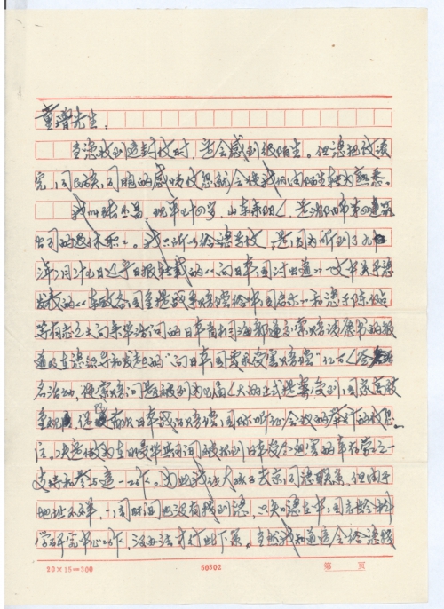 我叫张丕昌,现年七十四岁,山东来阳人,是沈阳市第四建筑公司的退休职工。我[之]所以给您写信,是因为听到了九三年二月二十七日辽宁日报转载的《向日本国讨公道》一文中关于您发表的《东欧各国重提战争赔偿给中国启示》和您[与]陈健等有志之士向来华访问的日本首相海部递交索赔请愿书的报道及在您领导和发起的“向日本国要求受害赔偿”亿万人签名活动,使索赔问题被列为七届人大的正式提案受到国家高度重视,促进首次日本战的赔偿国际听证会议的举行的信息后。决定做为在日侵华期间被抓到日本受尽迫害的幸存劳工之一支持和参与这一工作。为此我让大孩子去京同您联系,但由于地址不详,一周时间也没有找到您,只知您在中国老龄科学研究中心工作,没办法才行此下策。当然我知道这会给您找许多麻烦,会影响您的工作和休息,但是我思前想后,这样一件大事,对我一个七十多岁又一个字不识的人来讲怎么办的了哪?因此硬着头皮汇书给您,您看如我的情况可以的话,请在百忙中给我个回音,我好把当年被抓和受尽迫害的的事实经过求人汇成材料在次上京求您帮助向日本国讨这个公道。