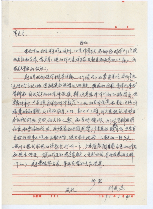 你给我的回信,我于昨天收到,心里非常高兴,感谢您对我们同胞的关怀和支持,您辛苦了,先让我代表我全家及亲属和死去的三个亲人,向您表示尊敬的敬礼!