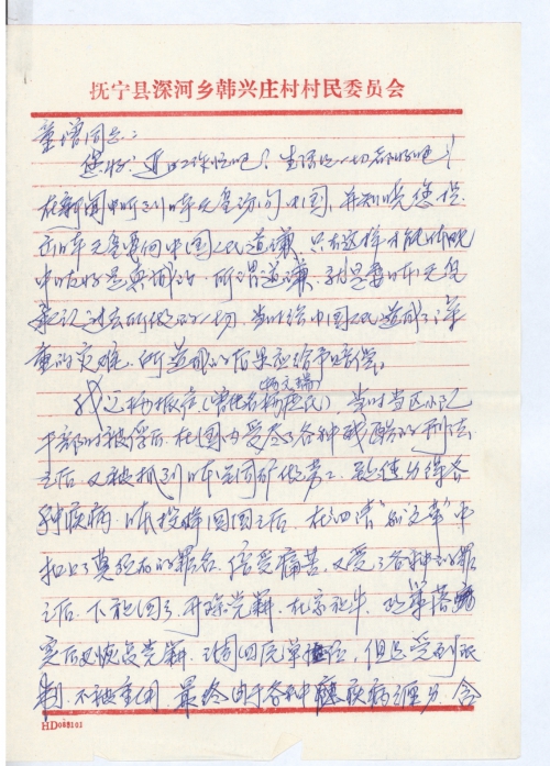 我乃他老人家的唯一遗后,在工作中也倍受牵连。入党报批回之后,由于父亲挨整,致使入党成为泡影,前途被埋没。家中的生活条件一直很差。当知晓您伸张正义,我们全家非常的激动,感慨万分,这已是我们全家盼望已久的愿望了,已故老父亲他老人家也会含笑九泉的。真诚的希望您抽出一点时间为我们贫苦受冤的民众做主,拜托了!