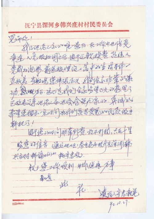 写信日期:1992-10-27