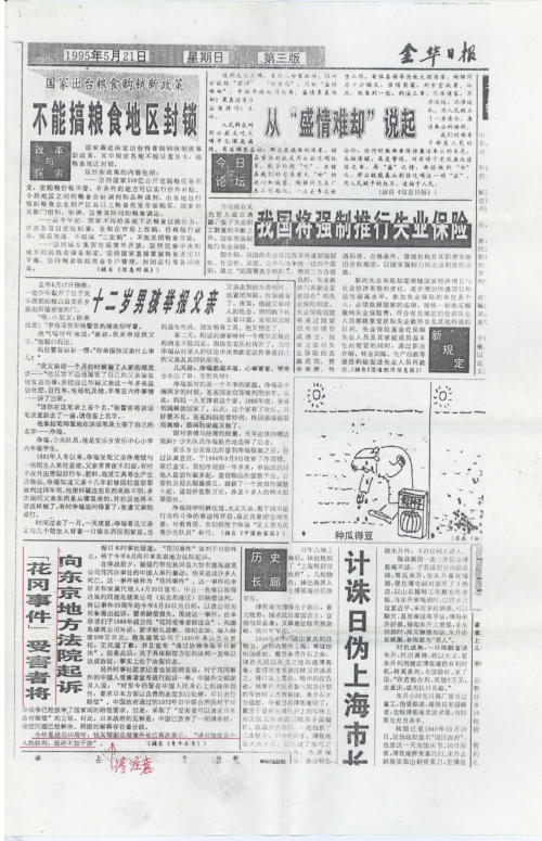 最近我在金华日报看见,在二战期间日本侵略分子在中国大地犯下滔天罪恶——在我国胜利前夕,日军把中国人民强行带走到日本国土做艰苦生活后,日军还殴打和虐待中国人民,由[此]引起暴动之事,结果被日军杀死许多人,现今该地人民[联]合起来向日本国法院起诉,现我已把该报剪下一角,经过复印寄给先生过目参考。