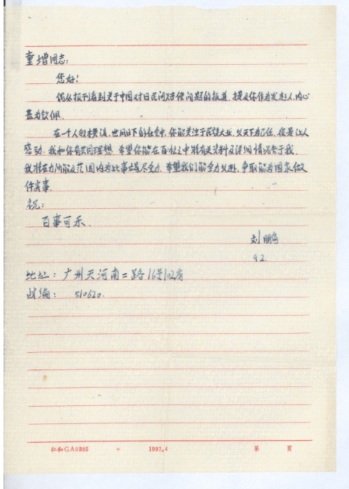 偶从报刊看到关于中国对日民间赔偿问题的报道,提及你作为发起人,内心甚为钦佩。