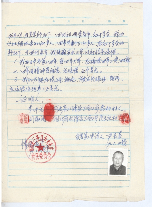 I am one of the most heavily persecuted victims of Japanese invasion into China; I strongly demand the Japanese government to offer compensation for my loss.