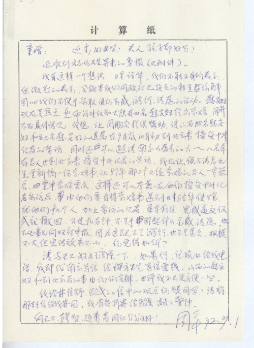 请与王工好好商量一下,如果行,就晚上给我电话,我即给南京写信,给方先生写信要钱。山西的慰安妇和到北京后的事由你们安排。也许我不去更方便一些。