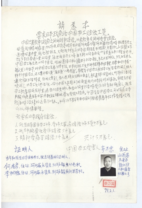 强烈要求日本政府给中国劳工赔偿。
